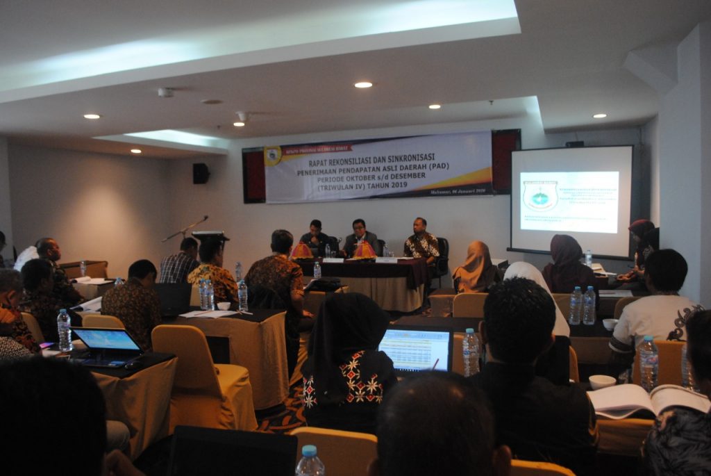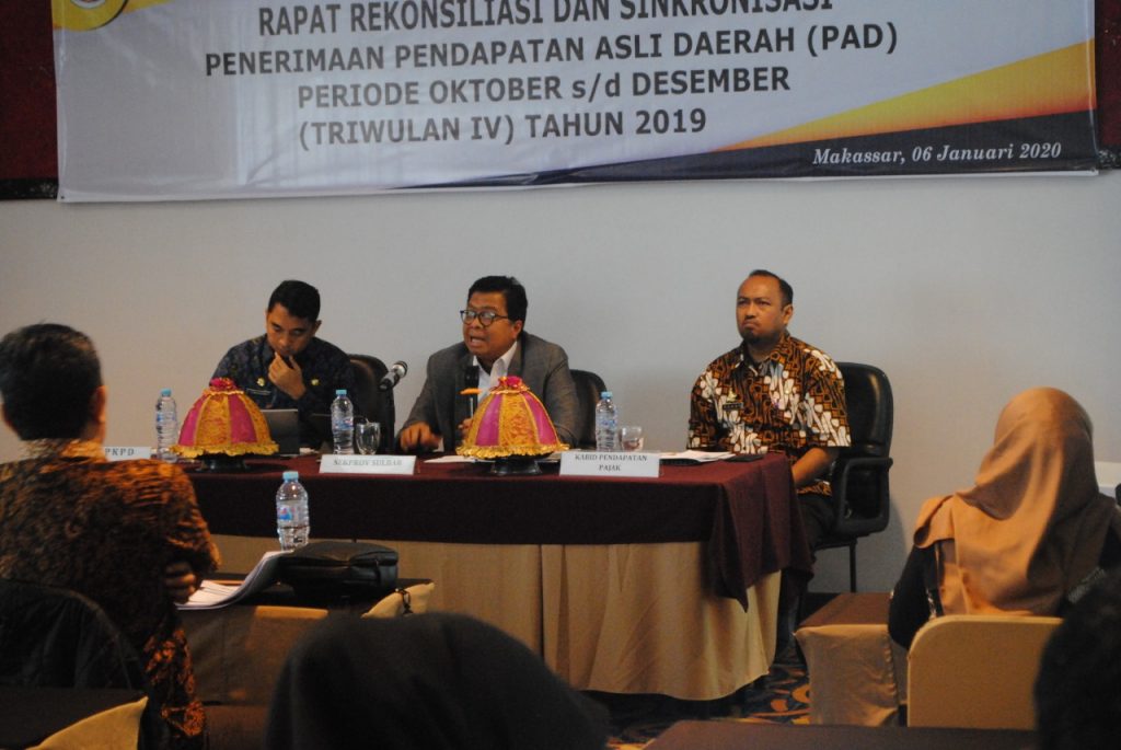 SULBAR,- Sekprov Sulbar, Muhammad Idris, Kepala BPKAD Sulbar, Amujib , Kabid Pendapatan Fahri Yusuf pada acara Rapat Rekonsiliasi dan Sinkronisasi Penerimaan Pendapatan Asli Daerah (PAD) periode Oktober-Desember (triwulan IV) tahun 2019, di Hotel Grand Maleo Makassar, Senin lalu, 06 Januari 2020. (ADVETORIAL)