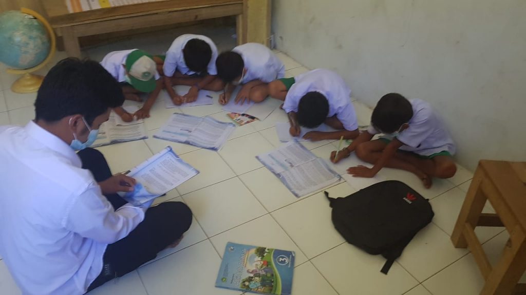“ Tidak enak belajar seperti ini, tidak ada meja dan kursi, punggung sakit saat belajar karena membungkuk lama, “ keluh salah satu murid kelas IV, Ayu Wandira kepada wartawan, Selasa siang (14/09/2021).