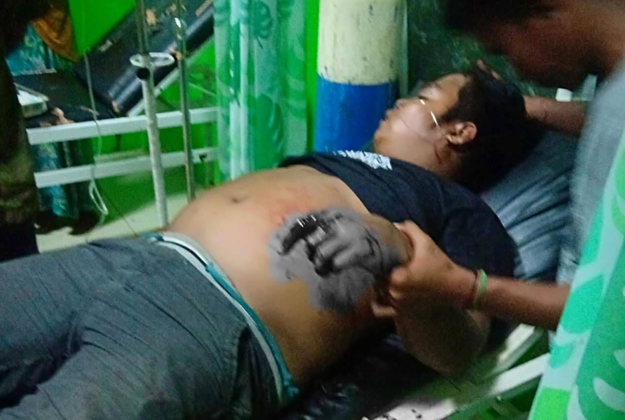 Salah satu korban kecelakan melibatkan pemotor dan pengemudi bentor di Jalan Poros Benato Rejo, Kecamatan Tapango, Senim malam (27/05/19), saat jalani perawatan di Puskesmas Pelitakan. Sumber Photo : Polres Polman.