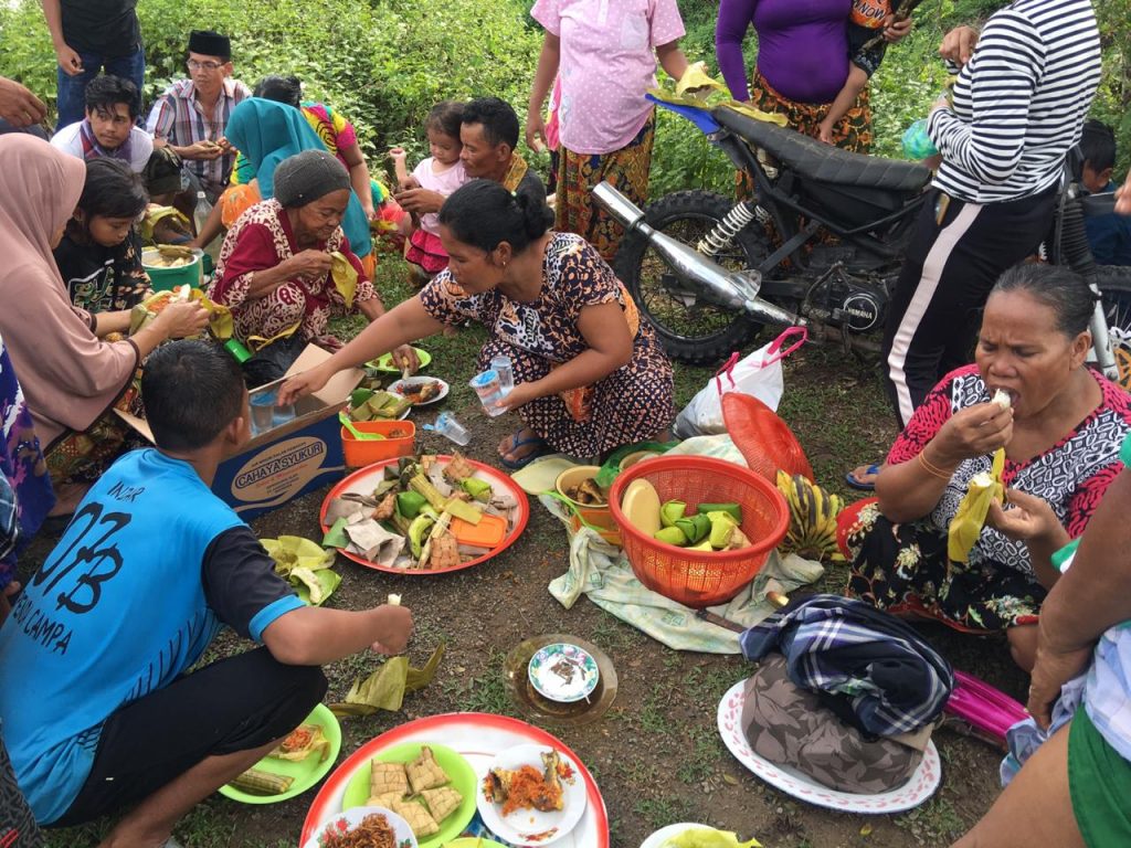 Tradisi diakhiri, dengan menggelar acara makan bersama di bantaran sungai. (Thaya)
