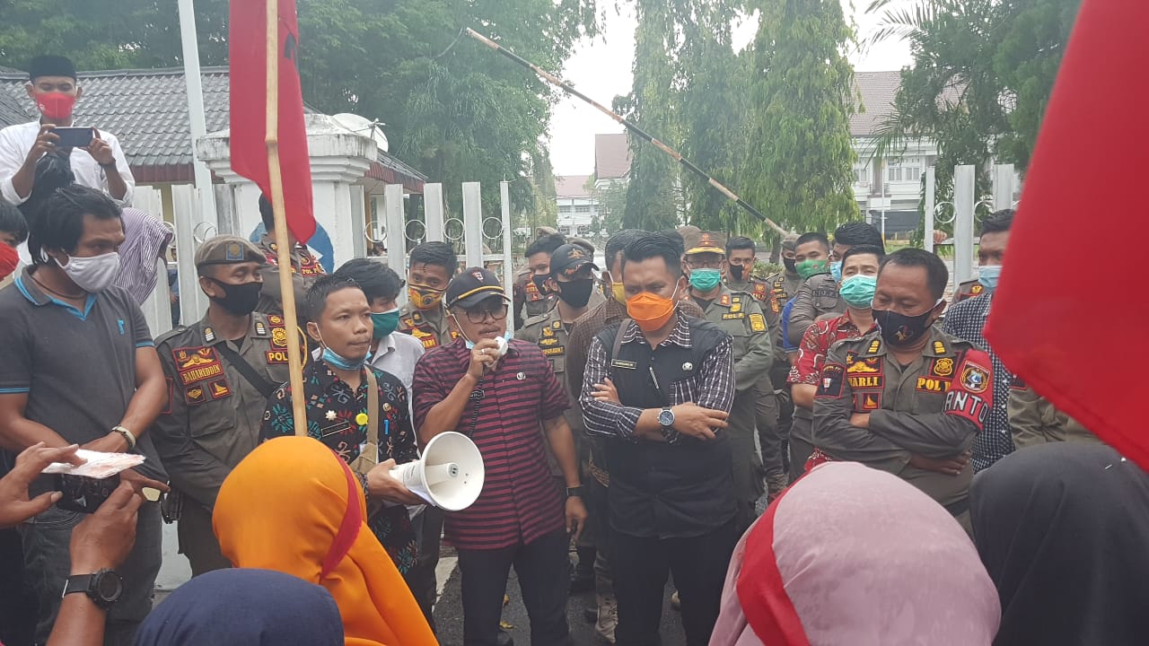 “ Itu jelas melanggar Undang-Undang, Permendagri Nomor 130 tahun 2018, pasal 14 yang berbunyi bahwa dikelola dengan swakelola, tapi ternyata di lapangan tidak sesuai dengan yang diatur dalam permendagri tersebut “, kata koordinator lapangan Asrul Ruslan dalam orasinya.