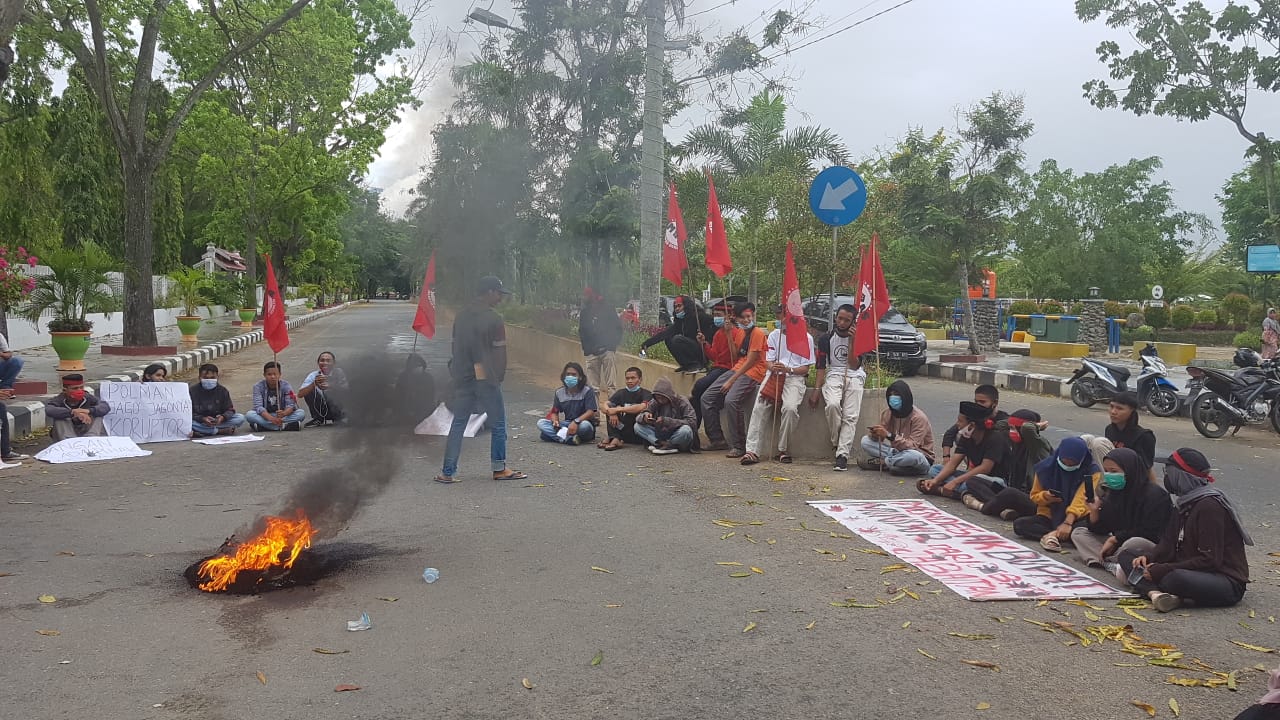 POLEWALI,- Puluhan massa aksi yang tergabung dalam Aliansi Mahasiswa Pemuda Sulawesi Barat (AMPAS), berunjuk rasa di depan Kantor Bupati Polewali Mandar, Jalan Manunggal, Kelurahan Pekkabata, Kecamatan Polewali, Kamis siang (15/10/2020).